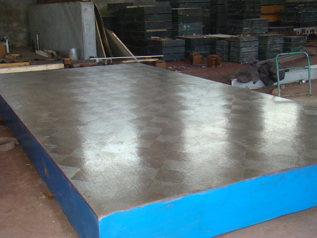 檢驗平臺表面質量是用涂色發進行檢驗,平板按_標準計量檢定規程執行,分別為0,1,2,3級四個級別。主要采用高強度鑄鐵HT200-HT300制造,工作面硬度為HB170-240。檢驗平板工作面通常應采用刮削工藝。對采用刮削加工的3級平板工作面,其表面粗糙度Ra_允許值為5μm。我公司對于用戶要求的特殊規格的檢驗平臺可以根據需方圖紙制作或雙方商定生產加工。